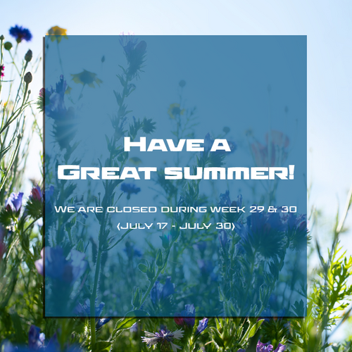 Snart är det dags för lite semester, vilket innebär att vi kommer att ha sommarstängt under vecka 29 och 30. Vi garanterar leverans av lagervaror för alla beställningar som tas emot senast onsdagen den 12 juli.