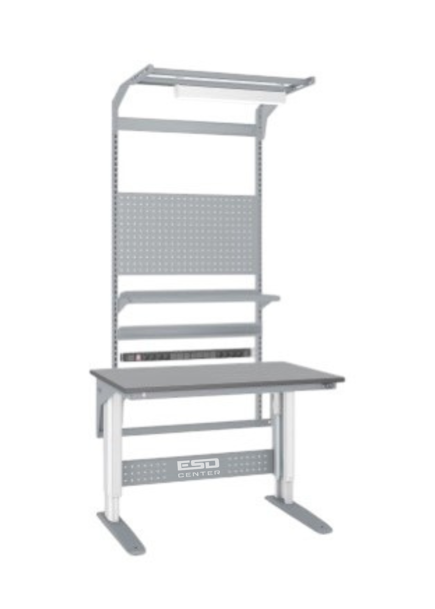 Detta premium ESD-arbetsbord är en professionell och ergonomisk lösning för miljöer där skydd mot statisk elektricitet är ett krav. Bordet är höj- och sänkbart med motor, vilket ger god flexibilitet och möjlighet till anpassning efter olika arbetsmoment och användare. Stommen är tillverkad i slitstarkt, lackerat stål med en smutsavvisande yta, vilket gör det tåligt för daglig användning. Alla standardtillbehör är lackerade med en dissipativ färg för att säkerställa ESD-skydd i hela arbetsytan. Med en maxbelastning på 300 kg är bordet idealiskt för elektronikmontering, laboratoriearbete och andra tekniskt krävande arbetsstationer. Följande delar ingår i ett 1200x800 Komplett ESD Arbetsbord: