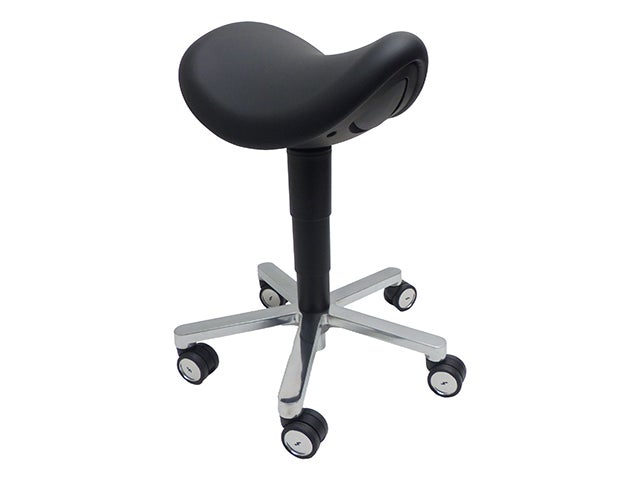 Arbetsstol med fem ledande, mjuka hjul som rullar lätt och passar för ESD-miljöer. Stolen har steglös höjdjustering mellan 540 och 800 mm med hjälp av en gaslift, vilket gör den enkel att anpassa individuellt efter användaren.