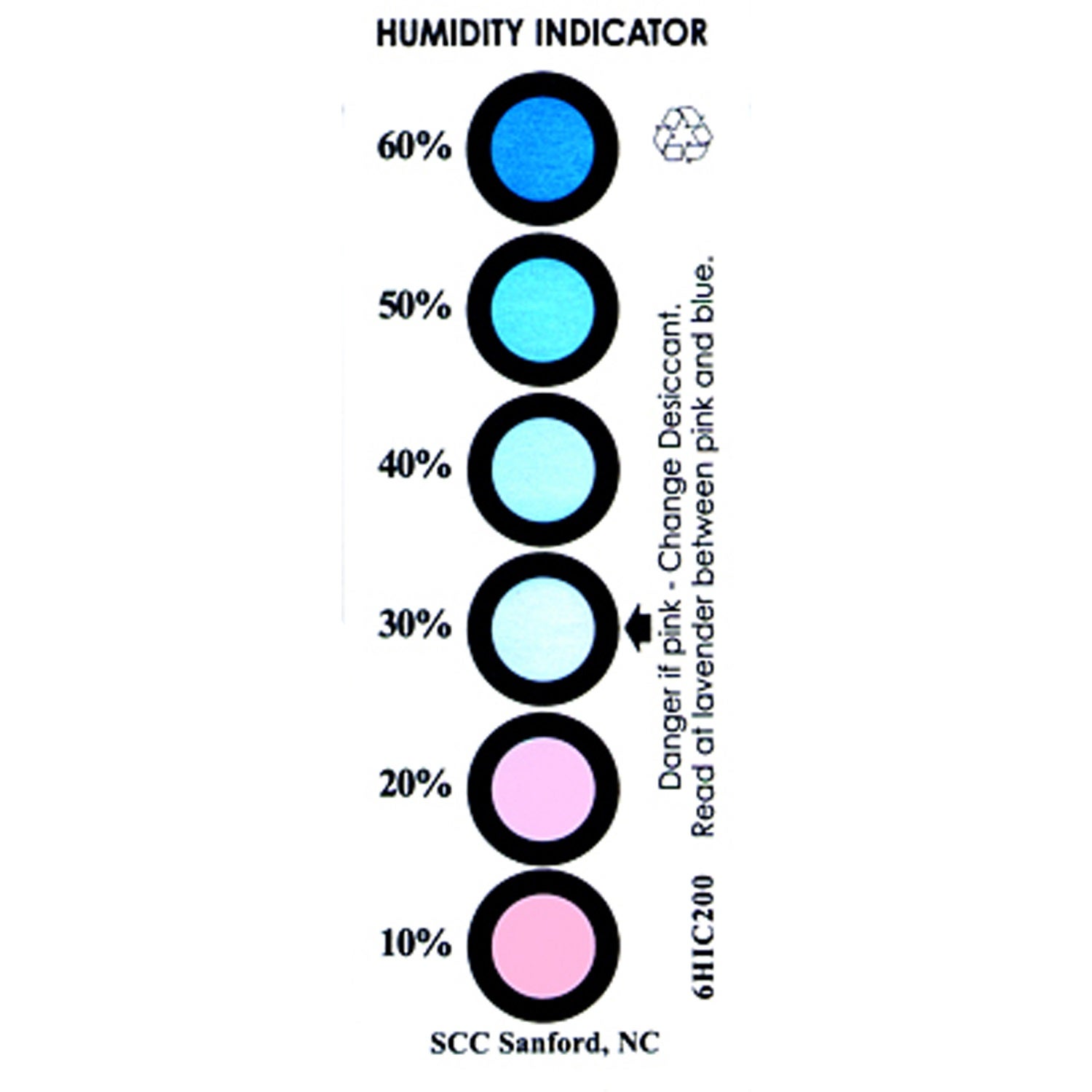 Humidity Indicator Cards visar hur mycket fukt emballaget innehåller. Kontrollera indikatorn direkt när emballaget öppnas att alla cirklarna fortfarande är blå. Är någon cirkel rosa, vidtag rekommenderad åtgärd.