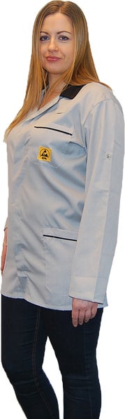 Denna korta ESD-rock är utformad för att ge ett effektivt skydd mot statisk elektricitet i känsliga arbetsmiljöer. Rocken är lätt, ventilerande och har ett stilrent utseende som passar både män och kvinnor. Den är idealisk för användning inom elektronikproduktion, montering, laboratoriemiljöer samt service och teknisk support inom EPA-zoner. Det statiskt dissipativa materialet innehåller konduktiva fibrer i ett rutmönster med 4 mm mellanrum som effektivt leder bort statisk elektricitet. Materialet är lätt och andas väl, vilket gör rocken bekväm att bära under hela arbetsdagen. Modellen är unisex och passar både män och kvinnor, och ESD-logotypen på bröstfickan ger en tydlig märkning som uppfyller kraven för EPA-zoner. Med sitt professionella utseende lämpar sig rocken både för tekniska och kundnära miljöer. Den är dessutom enkel att underhålla och kan tvättas i 60°C för att hållas fräsch och i gott skick.