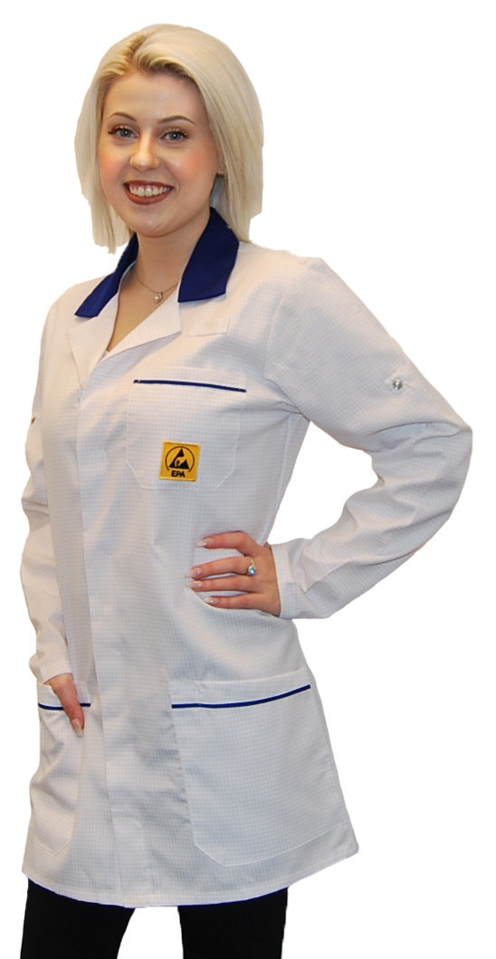 Denna korta ESD-rock är utformad för att ge ett effektivt skydd mot statisk elektricitet i känsliga arbetsmiljöer. Rocken är lätt, ventilerande och har ett stilrent utseende som passar både män och kvinnor. Den är idealisk för användning inom elektronikproduktion, montering, laboratoriemiljöer samt service och teknisk support inom EPA-zoner. Det statiskt dissipativa materialet innehåller konduktiva fibrer i ett rutmönster med 4 mm mellanrum som effektivt leder bort statisk elektricitet. Materialet är lätt och andas väl, vilket gör rocken bekväm att bära under hela arbetsdagen. Modellen är unisex och passar både män och kvinnor, och ESD-logotypen på bröstfickan ger en tydlig märkning som uppfyller kraven för EPA-zoner. Med sitt professionella utseende lämpar sig rocken både för tekniska och kundnära miljöer. Den är dessutom enkel att underhålla och kan tvättas i 60°C för att hållas fräsch och i gott skick.