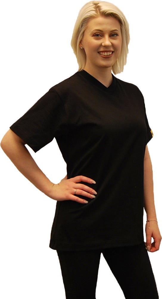 Denna ESD-skyddade T-shirt är framtagen för att ge ett effektivt skydd mot statisk elektricitet i känsliga arbetsmiljöer. Eftersom tröjan bärs direkt mot kroppen säkerställs god kontakt och kontinuerlig avledning av elektrostatiska laddningar. Den är både funktionell och bekväm, vilket gör den perfekt för daglig användning i EPA-zoner. T-shirten lämpar sig för användning vid elektronikproduktion, montering och testmiljöer, inom lager och logistik i EPA-zoner samt vid service och teknisk support. Tröjan har mycket goda ESD-egenskaper tack vare konduktiva fibrer som leder bort statisk elektricitet. Den direkta kontakten med kroppen säkerställer en effektiv avledning av laddningar. Modellen är unisex och passar både män och kvinnor. Den har en bekväm passform som gör den idealisk för heldagsbruk i EPA-zoner, och den är lätt att underhålla eftersom den kan tvättas i 40°C.