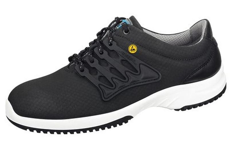 Skon har stålhätta vilket ger ett effektivt skydd mot fallande föremål och tryck. Säkerhetsskon är ESD-godkänd vilket innebär att den skyddar känslig elektronik genom att avleda statisk elektricitet. Skon är svart och vit och är gjort av funktionellt och slitstarkt läder. Perfekt för elektronikindustrin, laboratorier, renrum och andra tekniskt avancerade arbetsmiljöer där ESD-skydd är ett krav.