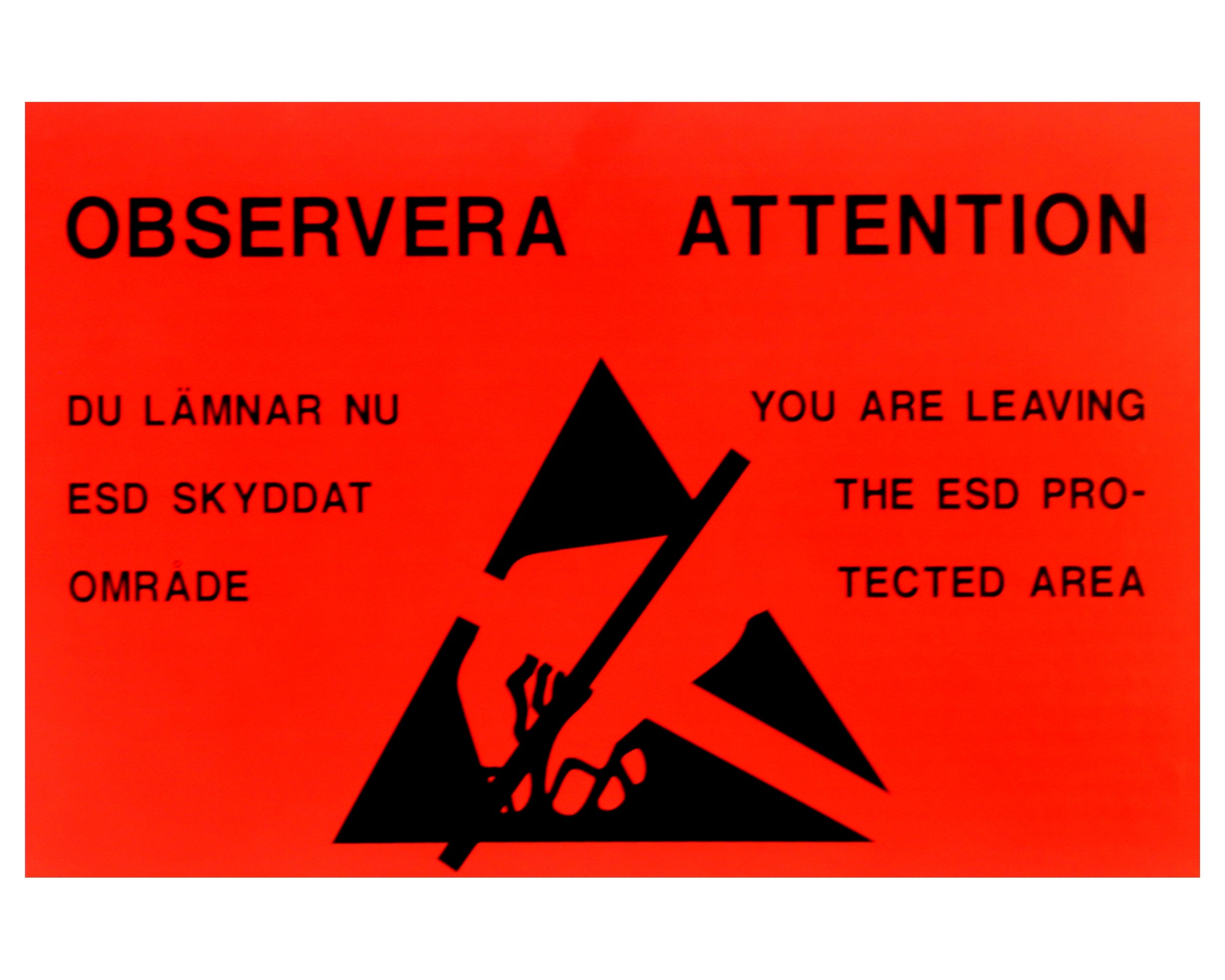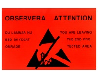 Tydlig märkning för säker hantering av ESD känsliga komponenter.