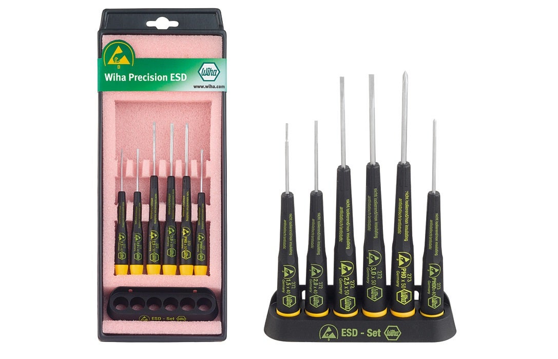 Skruvmejsel med dissipativt handtag, som även är ergonomiskt utformat. För arbete med ESD känsliga komponenter. Roterande ände.