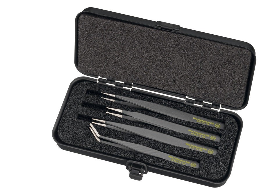 ESD-skyddade pincetter för precisionsarbete med små elektroniska komponenter.