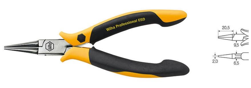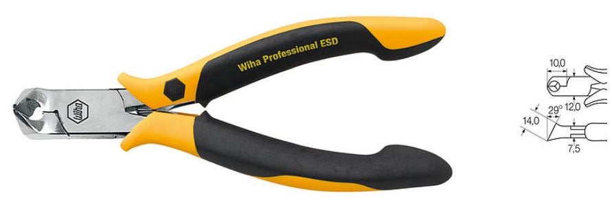 ESD-skyddade tänger och avbitare för säker hantering och klippning av elektroniska komponenter.