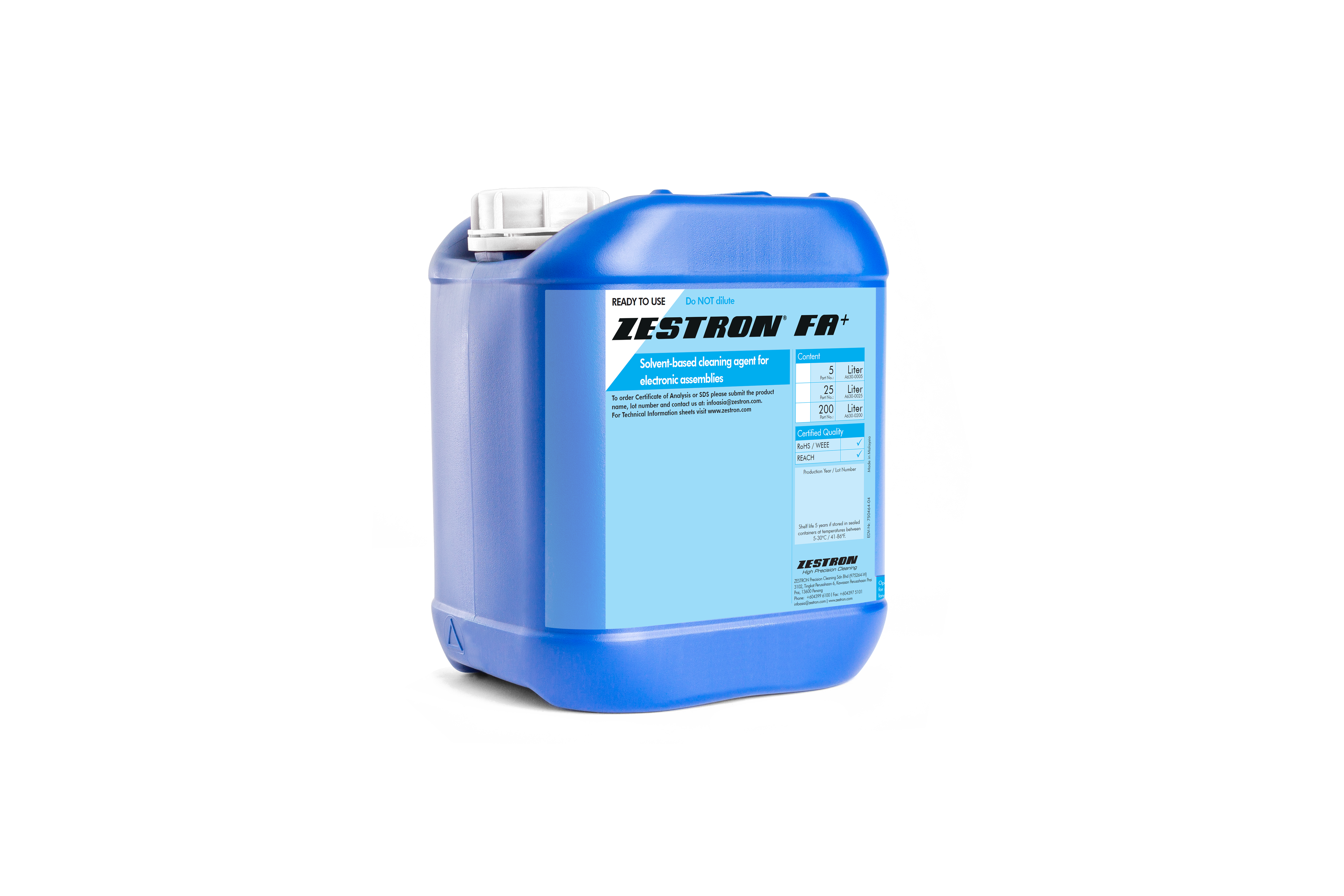 Zestron FA + är ett lösningsmedelsbaserat rengöringsmedel som är utformat för att ta bort alla typer av flödesrester från elektroniska enheter, keramiska hybrider, kraftelektronik (kraftmoduler, blyrambaserade diskreta komponenter, Power-lysdioder) och förpackningar (Flip Chips / CMOS).