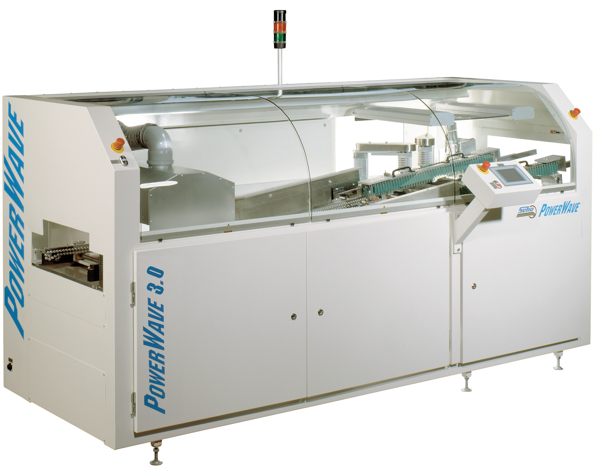 Den modulära konstruktionen av SEHO PowerWave erbjuder det perfekta konceptet för alla produktionskrav och gör att maskinen kan integreras i befintliga helautomatiserade produktionslinjer. Systemet är utrustat med högpresterande förvärmning och finns med antingen 1200 mm (47,2 ") eller 1800 mm (70,8") förvärmningslängd. Beroende på dina produktionskrav kan PowerWave vara utrustad med ett kedje- / fingertransportsystem för direktbearbetning av brädor eller med en lödramtransportör.